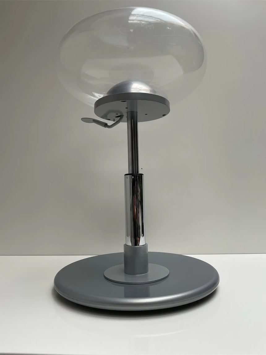 높이 조절이 가능한 투명한 아크릴릭 스툴입니다. 마치 우주공간을 연상시키는 듯한 디자인으로 공간에 오브제 역할을 할 수 있는 스툴입니다. 깨끗한 컨디션 입니다.